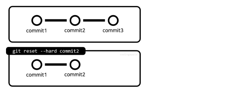 : 해당 commit이 생성될 때로 시간을 되돌려 준다. 협업할 때 사용하지 말자