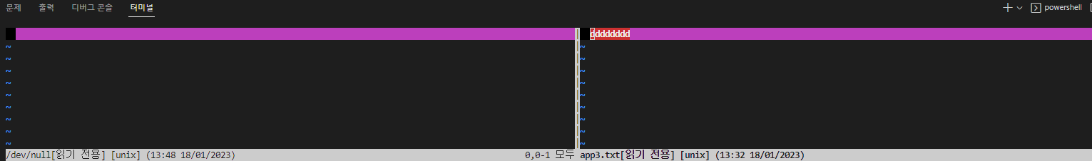 : git diff 명령어보다 시각적으로 보기 좋음 :q나 :qa는 종료