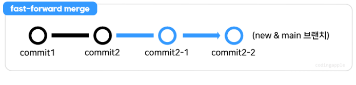 fast-forward merge란 합칠게 따로 없으므로 신규 브랜치의 이름을 main(master)라고 하는 것이다.