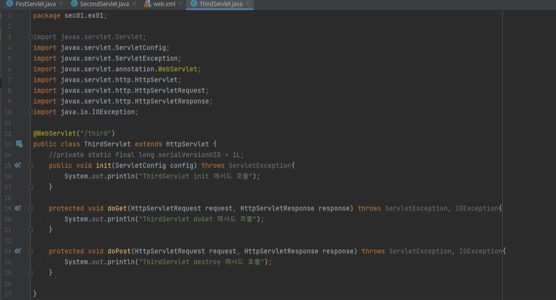 FirstServlet, SecondServlet의 각각 메서드가 잘 출력된는 것을 확인할 수 있다.