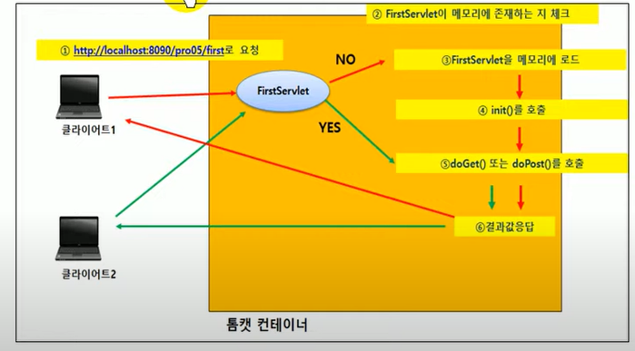 - 톰캣은 FirstServlet이 메모리에 load 되어 있는지 확인