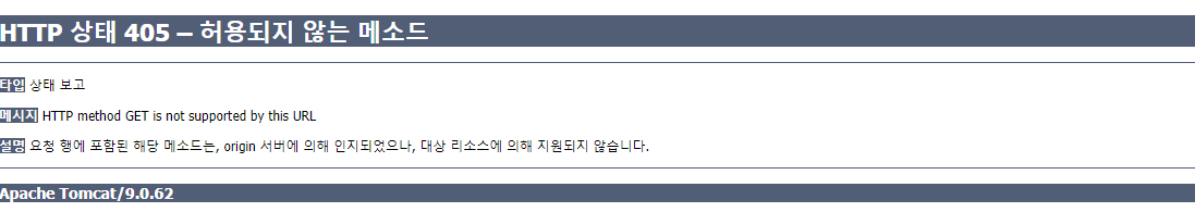 전송방식과 다른 메서드를 사용하면 브라우저에서 아래와 같은 오류가 발생한다.