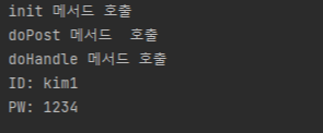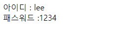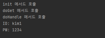위와 같이 서블릿이 ID와 비밀번호를 전달받아 브라우저로 출력하는 것을 볼 수 있다.