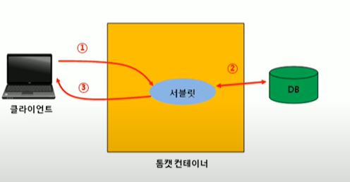 - Client가 Servlet에 요청하면 먼저 Tomcat 컨테이너가 받음