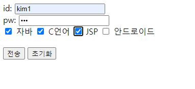 <input type="checkbox" name="subject" value="C언어"> C언어