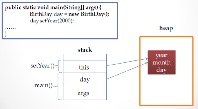 : 클래스 내에서 참조변수가 가지는 주소값과 동일한 주소값을 가진다.